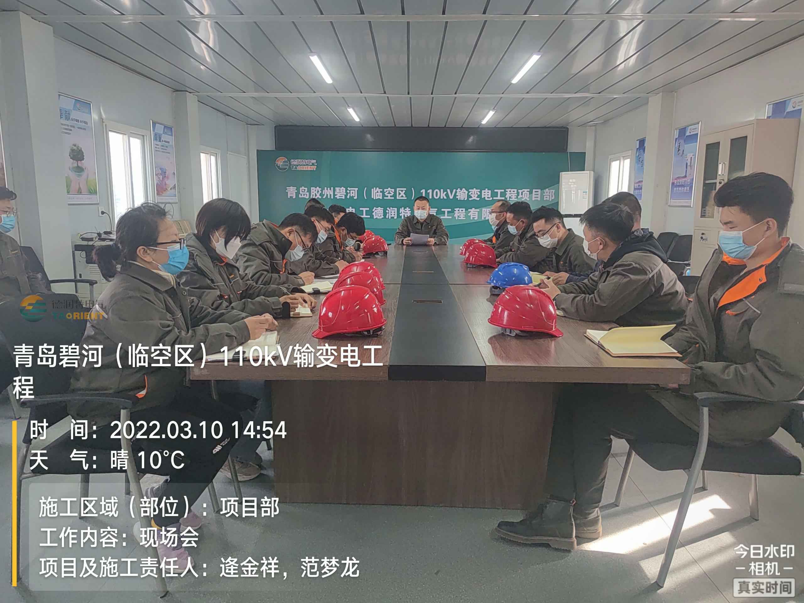 2022.03.10日,我司就青岛胶州碧河(临空区)110kV输变电工程开展了项目现场专检会,董事长宋晓鹏对项目实施过程中提出的问题进行了逐条复查,对接下来的施工进程向各位管理人员提出了更高标准的要求。